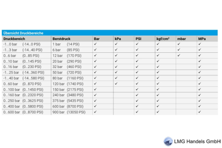 Druckbereiche von -1 bis max 600 bar