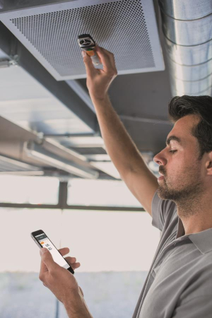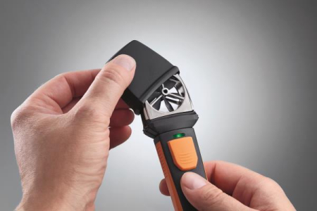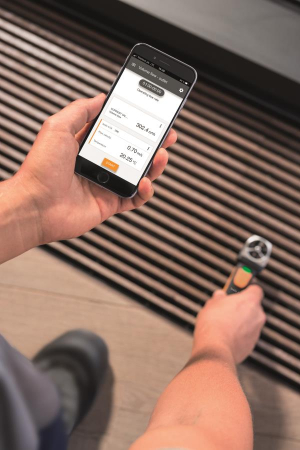 Das passt in jede Hemdtasche: Mit dem FlügelradAnemometer testo 410i sind Sie für die Messung von Luftgeschwindigkeit und Temperatur an Luftauslässen und Lüftungsgittern bestens gerüstet. Auch das Messen und Einstellen des Volumenstroms ist damit kein Problem. Mit dem testo 410i sind Sie maximal flexibel – und auch auf ungeplante Messanforderungen in Ihrem Alltag eingestellt. Messkomfort dank App Das testo 410i verbindet ProfiMesstechnik von Testo mit den effizienten Funktionen einer App. So wird Ihr Smartphone oder Tablet vor Ort kurzerhand zum Display für Ihre Messwerte. Alle Messdaten können Sie über die testo Smart Probes App darstellen. Und das Protokoll abschließend sofort als PDF oder ExcelDatei per EMail versenden. Mit der App wird die Konfiguration der Volumenstrommessung ganz einfach, u.a. weil Sie damit die Parametrierung des Auslasses (Dimension, Geometrie) intuitiv vornehmen können. Besonders praktisch: Beim Einregeln einer Lüftungsanlage können Volumenströme mehrerer Auslässe gegenübergestellt und verglichen werden. Und die zeitliche und punktuelle Mittelwertbildung gibt Ihnen schnell Aufschluss über die durchschnittliche Luftgeschwindigkeit z. B. an einem Lüftungsgitter. Systemvoraussetzungen: iOS 8.3 oder neuer Android 4.3 oder neuer Bluetooth 4.0