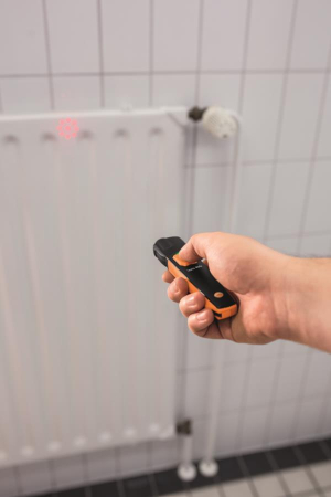 Das InfrarotTemperaturmessgerät testo 805i fungiert in Kombination mit einem Smartphone oder Tablet als kompaktes IRThermometer für Wandtemperaturen sowie Sicherungs und Komponententemperaturen von Klimasystemen. Dabei wird die MessStelle mit einem Laserkreis aus acht Punkten übersichtlich markiert – damit Sie immer ganz genau wissen, wo Sie messen. Dokumentation inklusive Bildern via App auf dem Smartphone/Tablet Über die auf dem Endgerät installierte testo Smart Probes App können Anwender ihre Messwerte bequem ablesen. Und die App kann noch mehr: mit ihr lassen sich auch Bilder inklusive Temperaturwert und Lasermarkierung erstellen und dokumentieren. Die Detektion schimmelgefährdeter Stellen wird durch ein eigenes Messmenü vereinfacht. Besonders praktisch: In der App ist eine Liste mit den Emissionsgraden bestimmter Materialien bereits hinterlegt, so dass das aufwändige Nachschlagen in Tabellen kein Thema mehr ist. Alle Messdaten werden wahlweise als Diagramm oder in Tabellenform dargestellt. Abschließend lässt sich das MessdatenProtokoll als PDF oder ExcelDatei direkt per Mail versenden. Systemvoraussetzungen: iOS 8.3 oder neuer Android 4.3 oder neuer Bluetooth 4.0